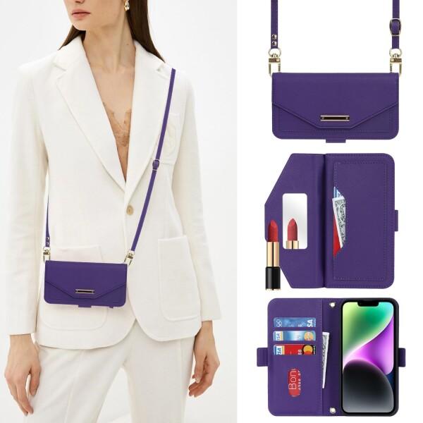 スマホケース iphone 14 ケース 手帳型 ショルダー 鏡 あいふぉん14ケース 財布型 ストラップ付き ミラー カード収納 アイフォン14ケース クロスボディケース 肩がけ 首掛け 斜め掛け 耐衝