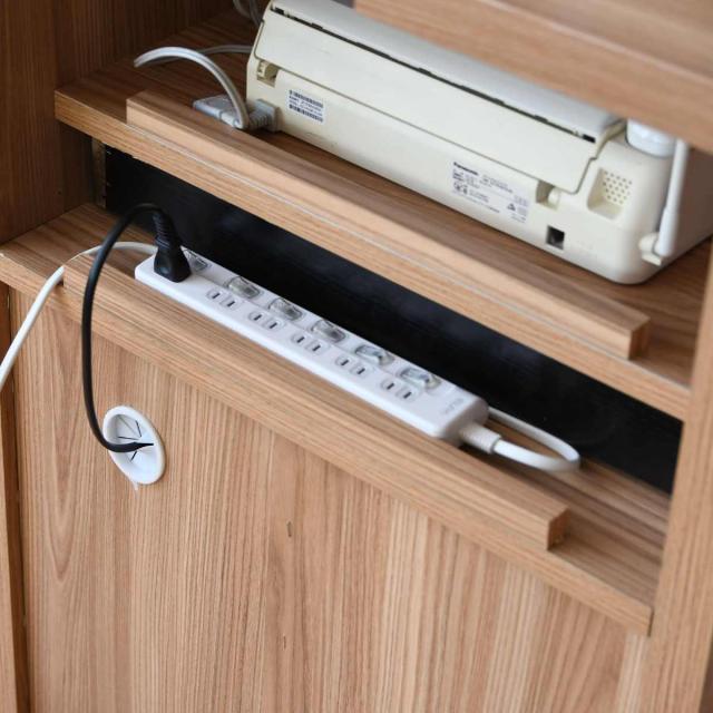 天板の奥にスリットがあるので、天板上に電話などを置いてもコードをスッキリと背面に落とすことができます。