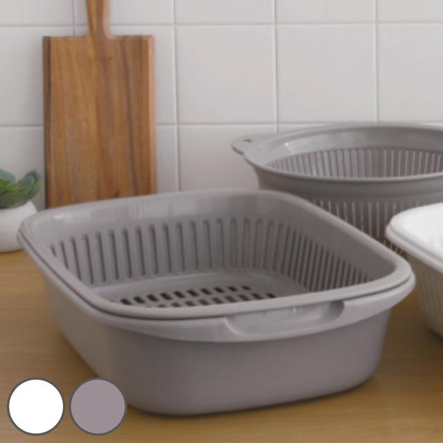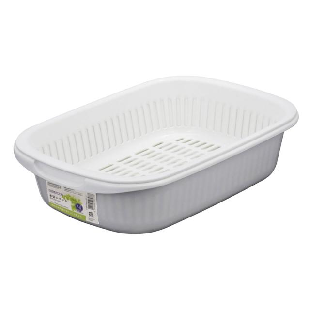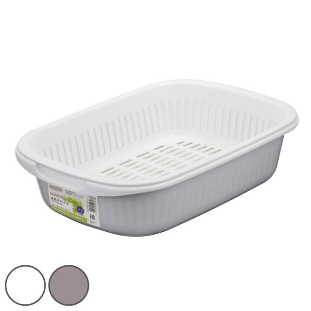 浅型の水切りバットです。お料理の際の洗った野菜の水切りとしてはもちろん、少量の食器の水切りカゴとしても活躍します。抗菌・防汚加工が施されているので、菌の繁殖を抑え衛生的にお使いいただけます。