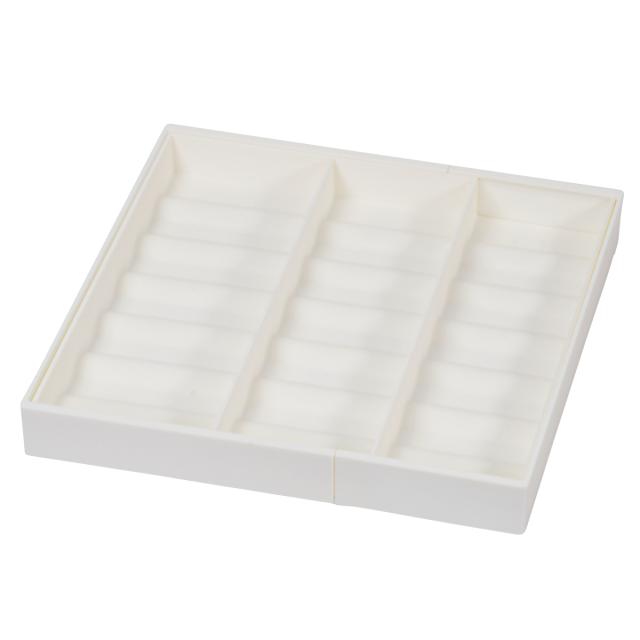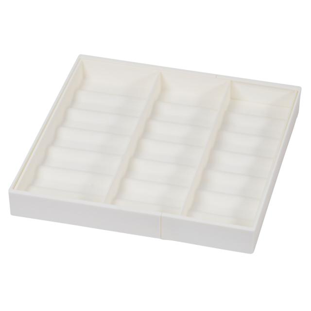 縦横に自由にスライドを伸縮させる事で、トレーを引出しに合わせて設置する事ができます。