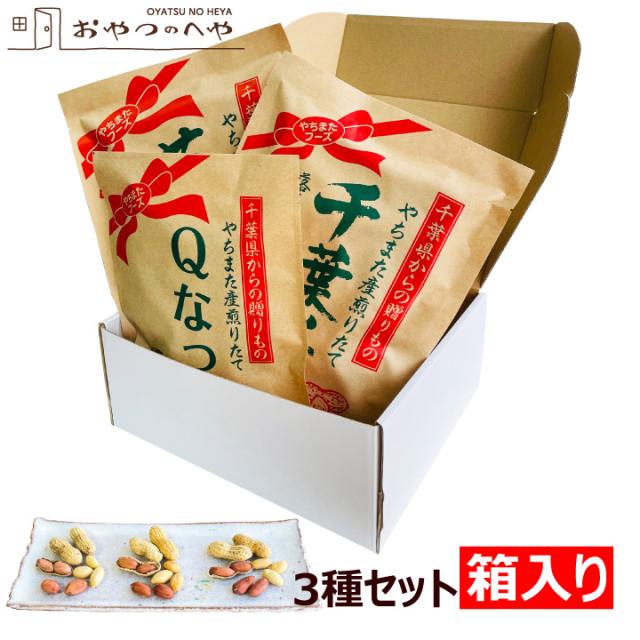 ギフト 箱入り 千葉県産 からつき 落花生 国産 3種セット 中手豊 千葉半立 Qナッツ 八街 やちまた 殻付き ピーナッツ ピーナツ 遠赤焙煎