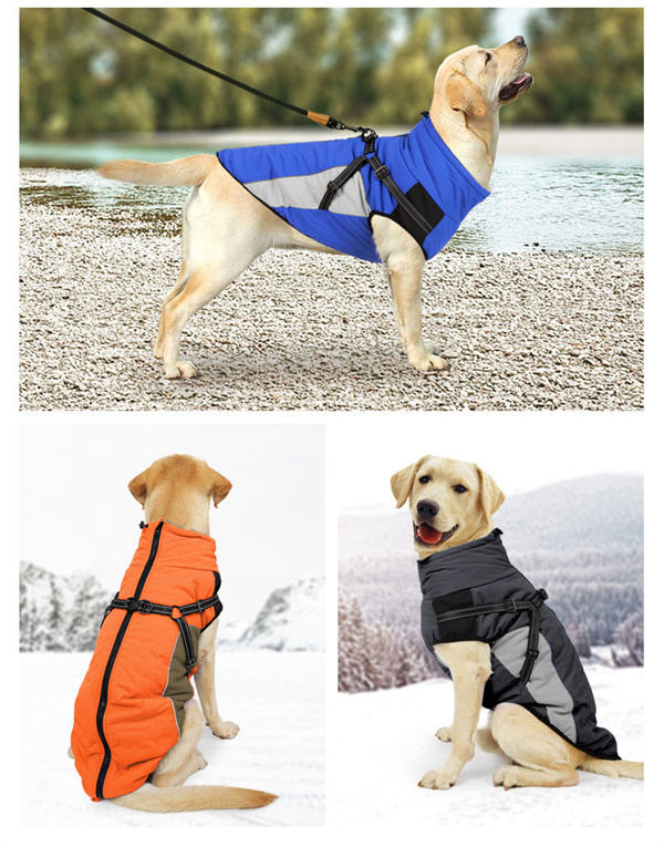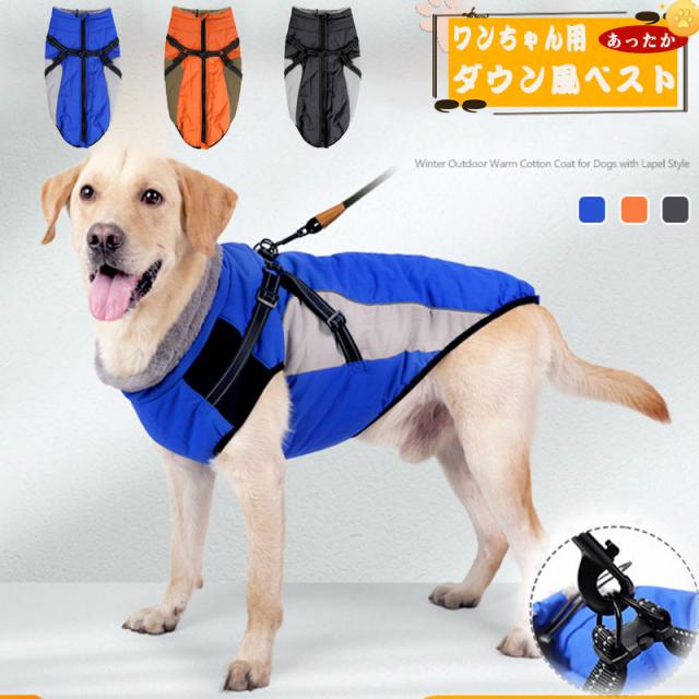 犬 服 犬服 犬の服 ドッグウェア 犬用ベスト ダウン風 犬用アウター 背中開き ハーネス一体型 着せやすい 中綿 秋冬 大型犬 中型犬 防寒 軽量