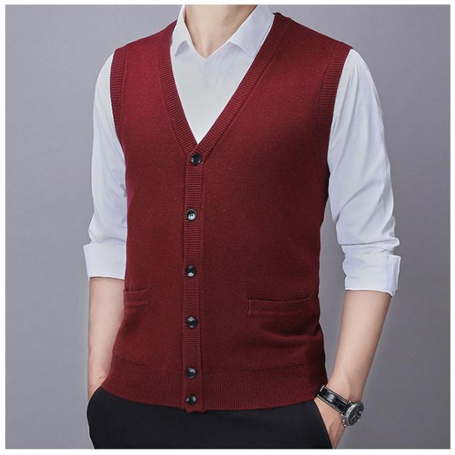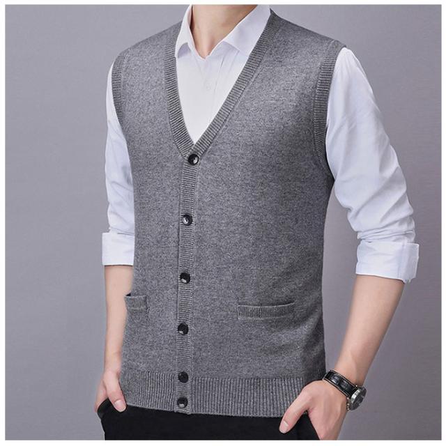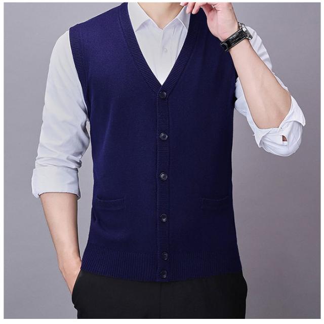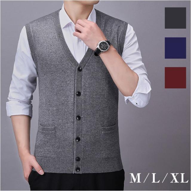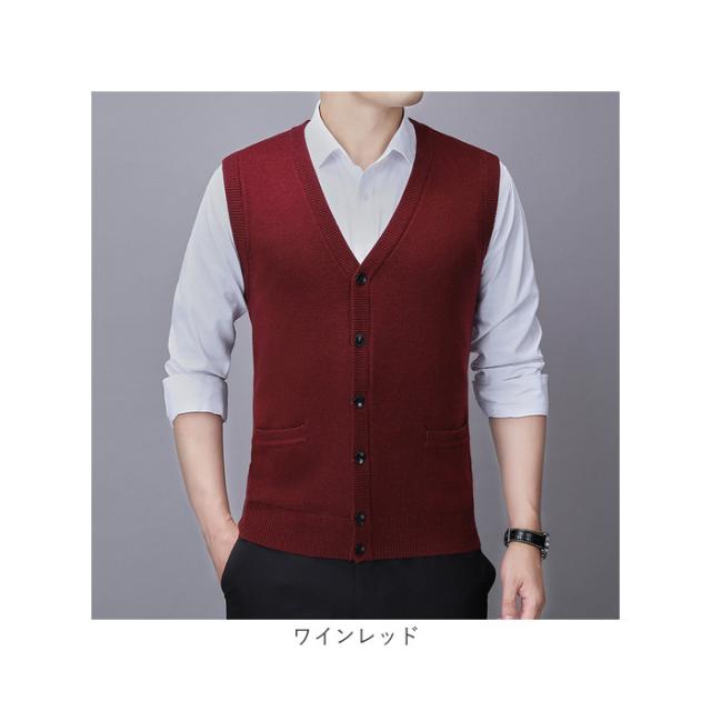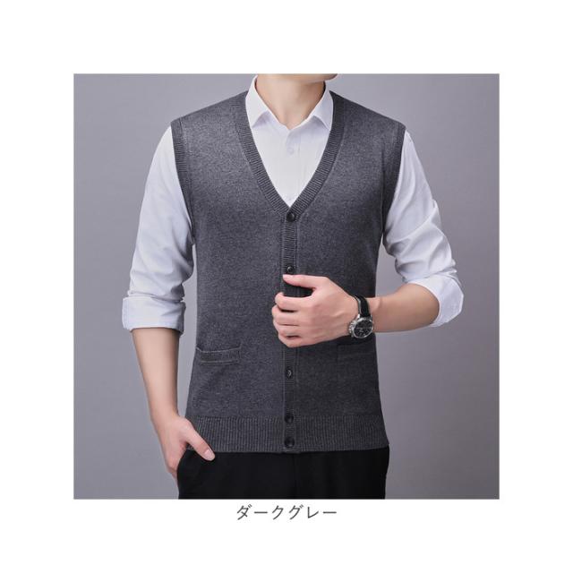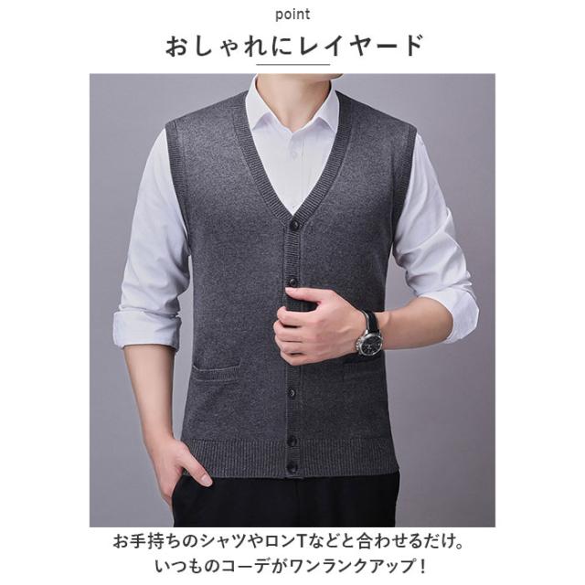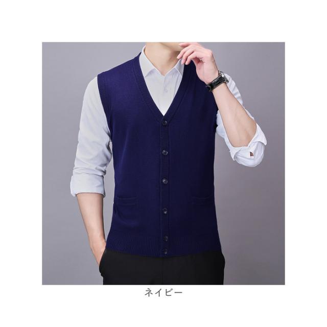 ニットベスト 前開 メンズ 通販 チョッキ ジレ トップス ボタン ウール 防寒 保温 Vネック 春 秋 冬 ポケット付き シンプル 無地 通勤 通学 制服 学生 ビジネス フォーマル