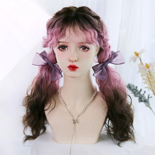 ウィッグ レディース フルウィッグ ロング グラデーション 巻き髪 ピンク ぱっつん前髪 可愛い かわいい 大人用 コスプレ ロリータ ゴスロリ コスチューム 原宿風 仮装 超自然 かつら wig Lolita 小顔 文化祭 イベント 学園祭 ハロウィン 地雷系 dq122n1n1l9