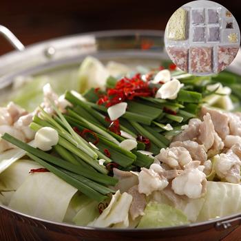 ・もつ鍋用スープ:ポークエキス、食用油脂、アミノ酸、玉ねぎ、食塩、しょうゆ、にんにく、砂糖、香辛料、でん粉、/調味料(ア ミノ酸等)、カラメル色素、香料、ビタミンB1、香辛料抽出物、(一部に乳成分、小麦、大豆、豚肉、鶏肉、ごまを含む)