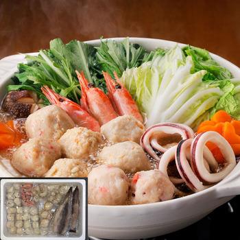 「かに入つみれ」・「えび入つみれ」・「とりごぼうつみれ」・「たこ入つみれ」など、ボリュームいっぱいのつみれを主役に「えび」や「いか」等の魚介を詰め合わせました。