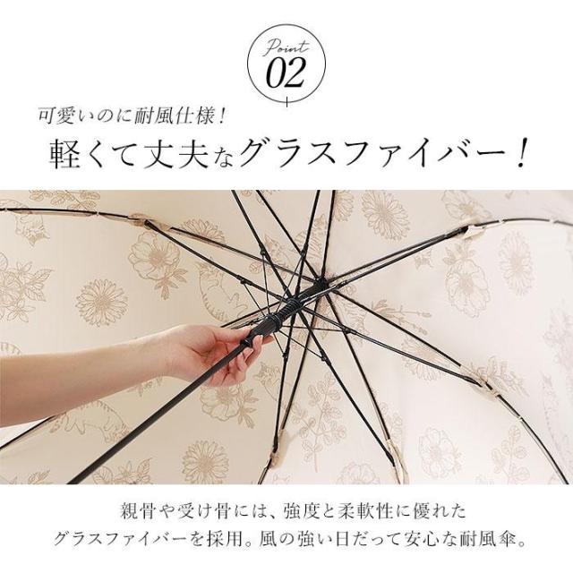 カラフルな傘生地に動植物の絵柄が描かれた、ワンタッチ耐風ジャンプ傘。親骨の長さ60cmタイプ。【丈夫なグラスファイバー製】親骨や受け骨には、強度と柔軟性に優れたグラスファイバーを骨を採用。軽量でしなやかな素材なので、風の強い日だって安心な耐風傘。【木製のハンドル】手元は滑らかな手触りの木製ハンドル。カジュアルスタイルでもオフィスでも、気軽に持てるナチュラルさが魅力。【ワンタッチ傘】片手に手荷物があるときでも安心なワンタッチジャンプ傘。突然の雨でもサッと開ける。【スナップボタン式】傘生地の留めるバンドは、スナップボタンでバチンっと留めやすい!【豊富なデザイン】バラエティー豊かな傘生地はパッと目を惹き雨の日も楽しい気分に♪もちろん雨粒をしっかり弾くはっ水加工済み。