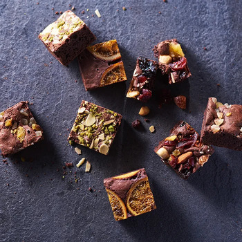 濃厚しっとりのブラウニーに、香ばしいナッツやドライフルーツを贅沢にトッピングしました。