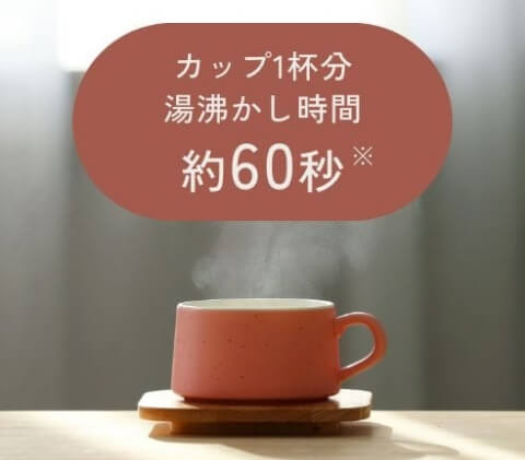 [湯沸かし時間※1]カップ1杯:約60秒※2