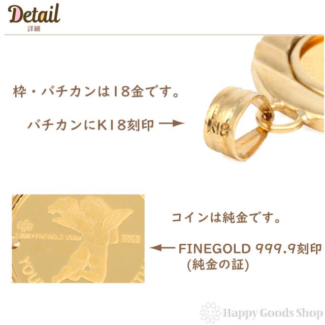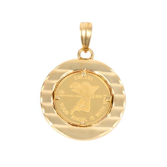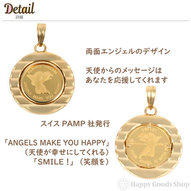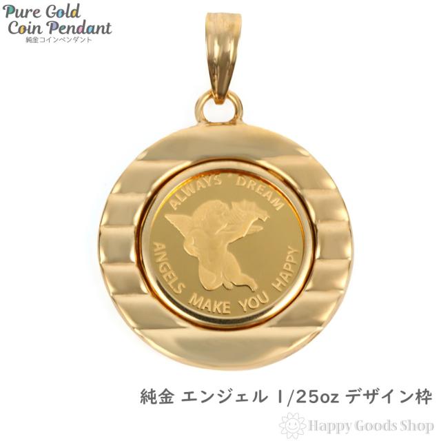 純金 K24 ペンダントトップ エンジェル 1/25oz メンズ レディーズ コイン ゴールド 天使 デザイン枠 ヘッド チャーム