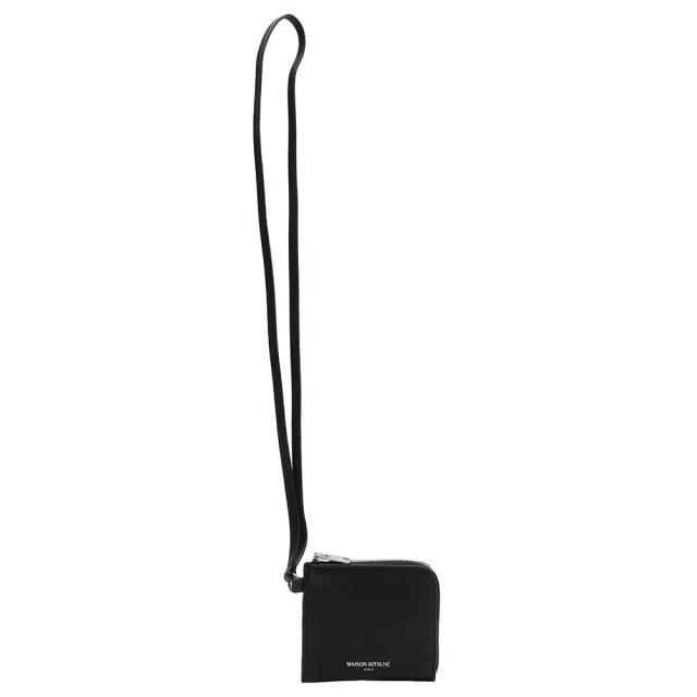 【商品レビューでポイント+5%】 MAISON KITSUNE メゾン キツネ NECK COIN PURSE 財布 ネックストラップ L字 ファスナー 小銭入れ コインケース メンズ レディース ユニセックス ブラック LM05347LC0038