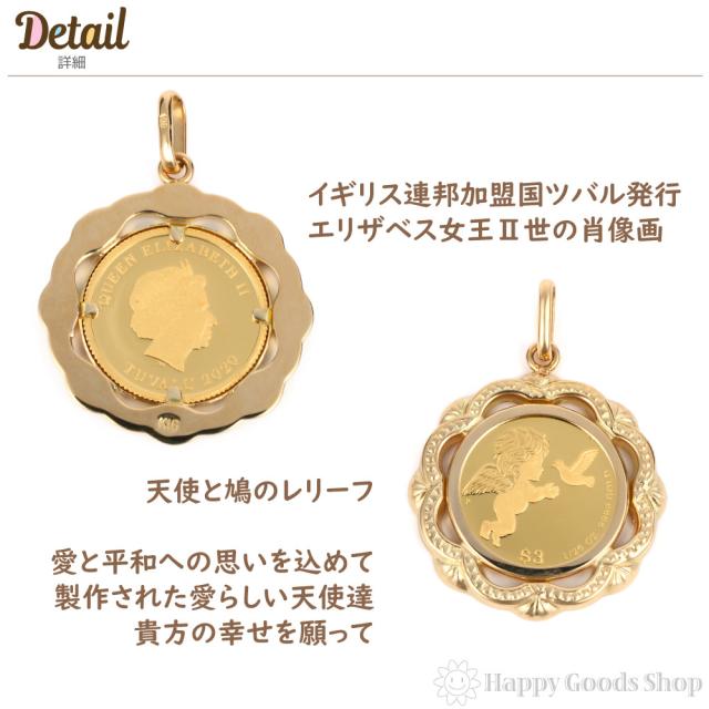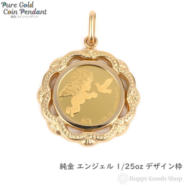 純金 K24 ペンダントトップ エンジェル 1/25oz メンズ レディーズ コイン ゴールド 天使 デザイン枠 ヘッド チャーム