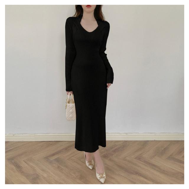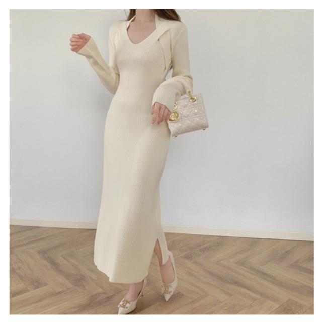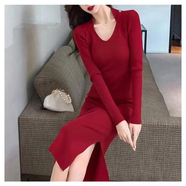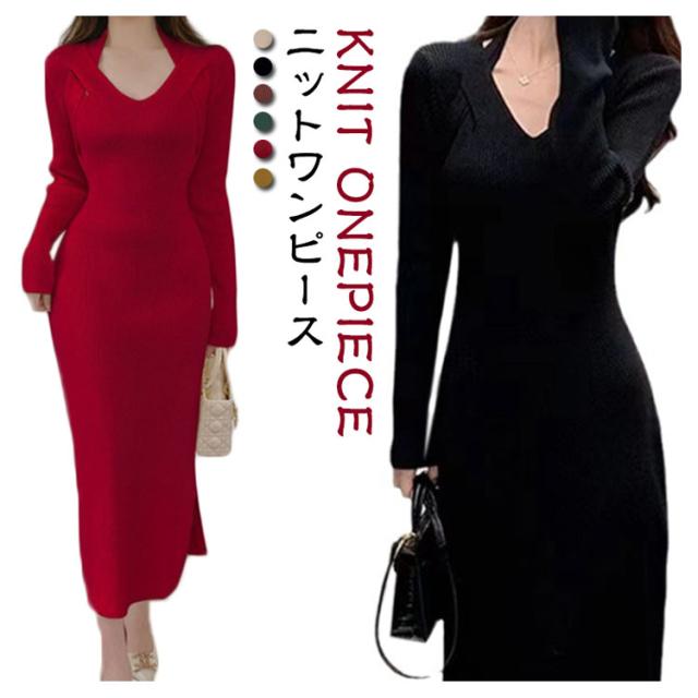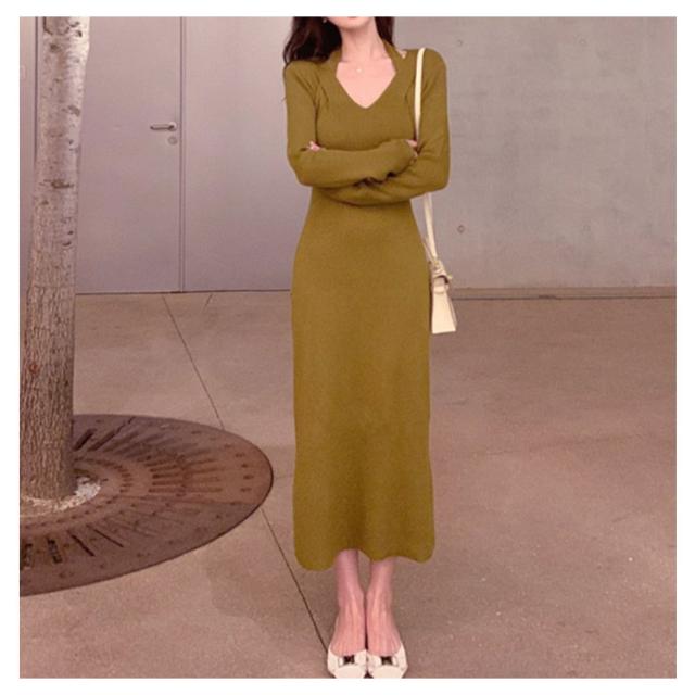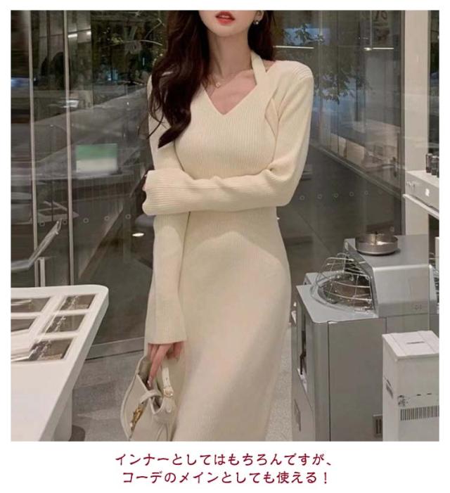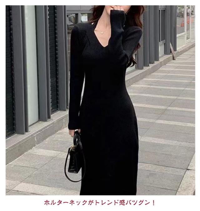 ホルターネック ニットワンピース ミモレ丈 レディース 長袖 ニットワンピース ロング ニット ワンピース カシミアタッチ ニット ロング ワンピース 通勤 オフィス デート 春 秋 冬 送料無料