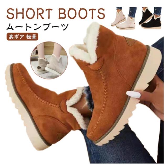 ムートンブーツ ショート丈 レディース ムートン ショートブーツ 裏ボア 軽量 歩きやすい 秋冬 痛くない ファイクファー ムートン ブーツ ショート スノーシューズ スノーブーツ ショート ムートンシューズ 防寒 送料無料