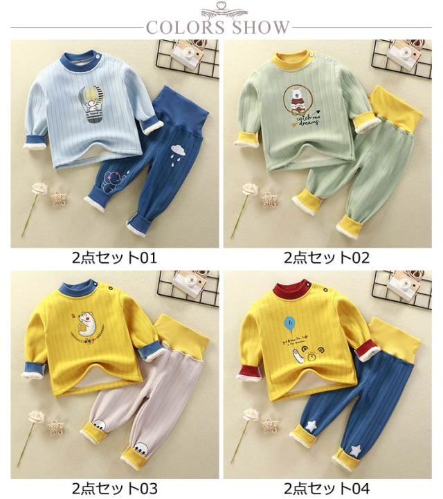 腹巻付きパジャマ キッズ こども ベビー パジャマ 裏起毛 冬 あったか 腹巻き付き 長袖 上下セット セットアップ ルームウェア 女の子 男の子 赤ちゃん 子供服 子ども服 かわいい おしゃれ 春 秋 冬 寝冷え対策 部屋着 ねまき 腹巻き