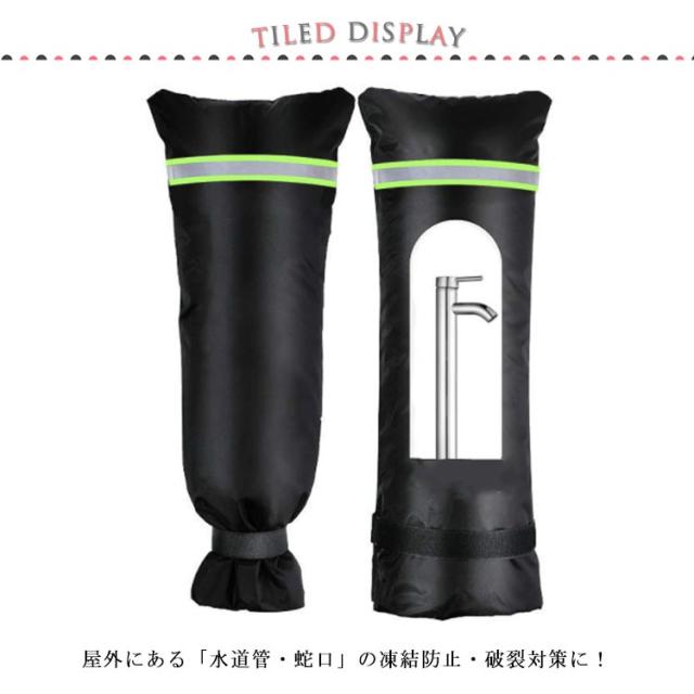 | 寒い冬の水道管・蛇口の凍結対策? 水道管凍結防止カバー 屋外にある「水道管・蛇口」の凍結防止・破裂対策に! 工具不要のワンタッチ取り付けで簡単・便利! 中綿入りで蛇口をしっかり保温して凍結を防止する! 夜も見えやすいように反射テープがついています。 凍結しやすい冬場に屋外で水道、蛇口をよく利用する方(凍結しやすい場所)にオススメ | |