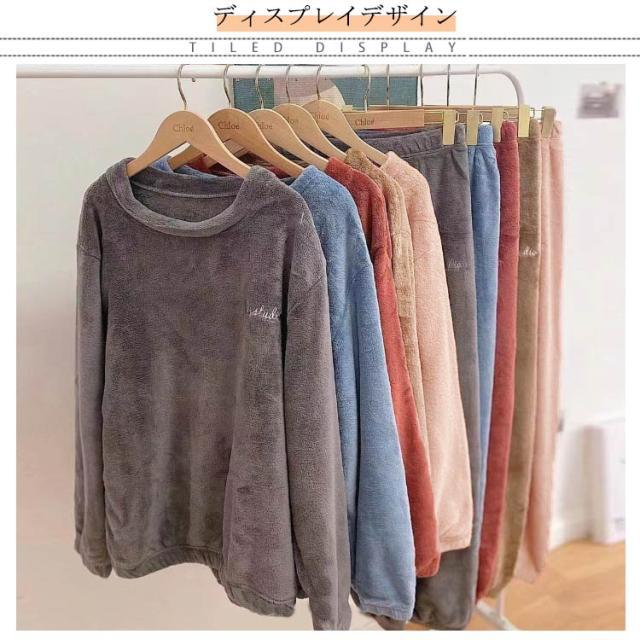 ペアパジャマ ルームウェア 男女兼用 上下セット もこもこ レディース メンズ フリース 部屋着 長袖 冬用 可愛い 軽い ふわふわ カープル ルームウェア ゆったり 秋冬 防寒対策 あったか 結婚祝い 送料無料