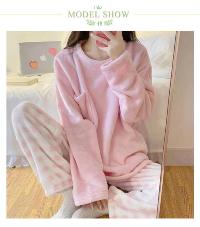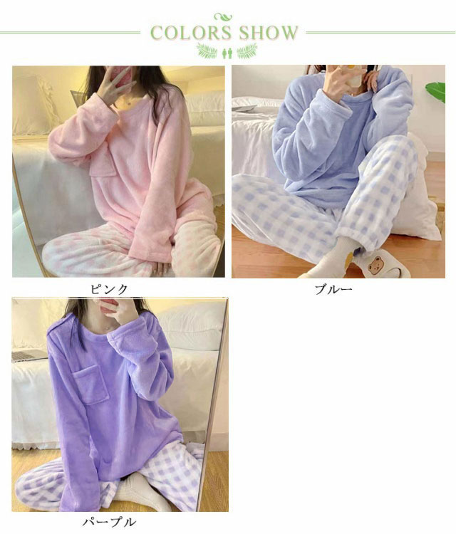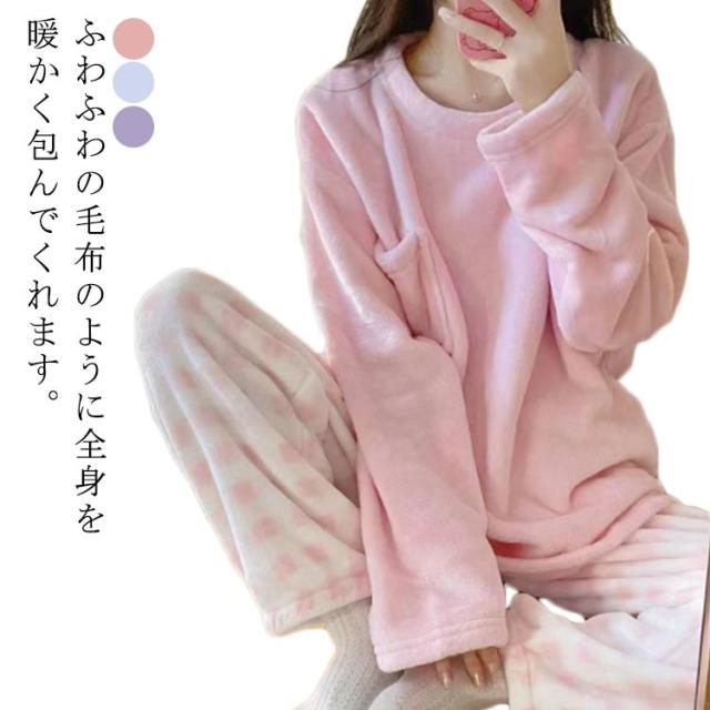長袖 レディース ルームウェア パジャマ 秋冬 起毛 モコモコ 厚手パジャマ 大きいサイズ 寝巻き 暖かい 上下セット かわいい
