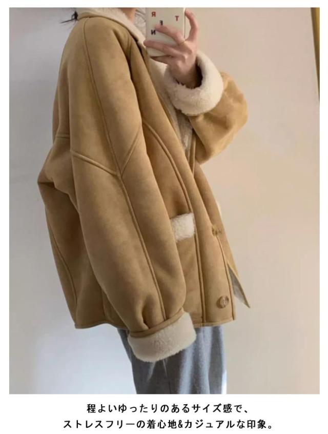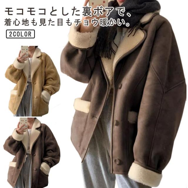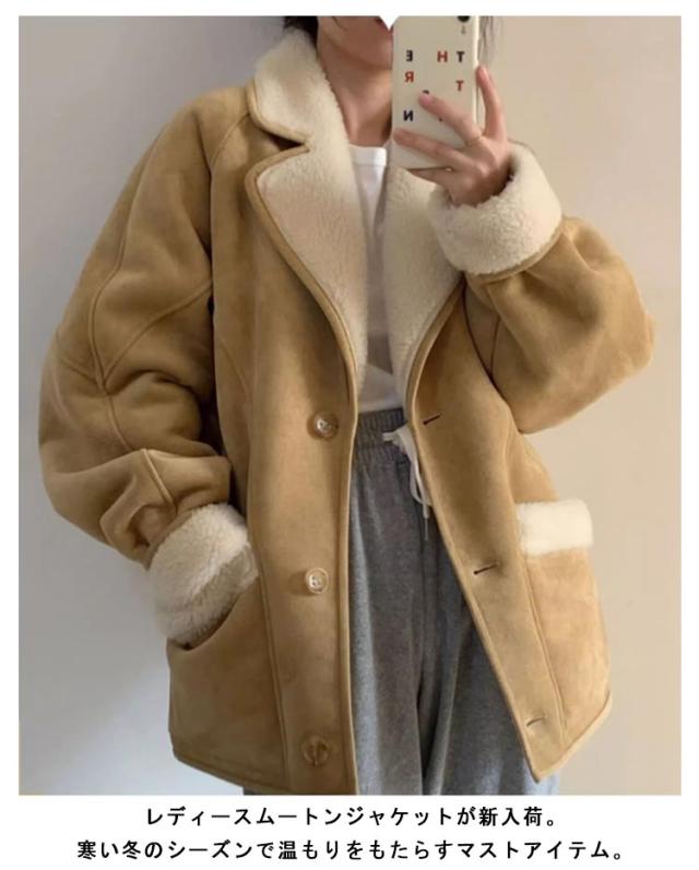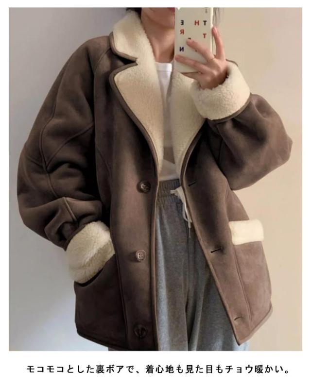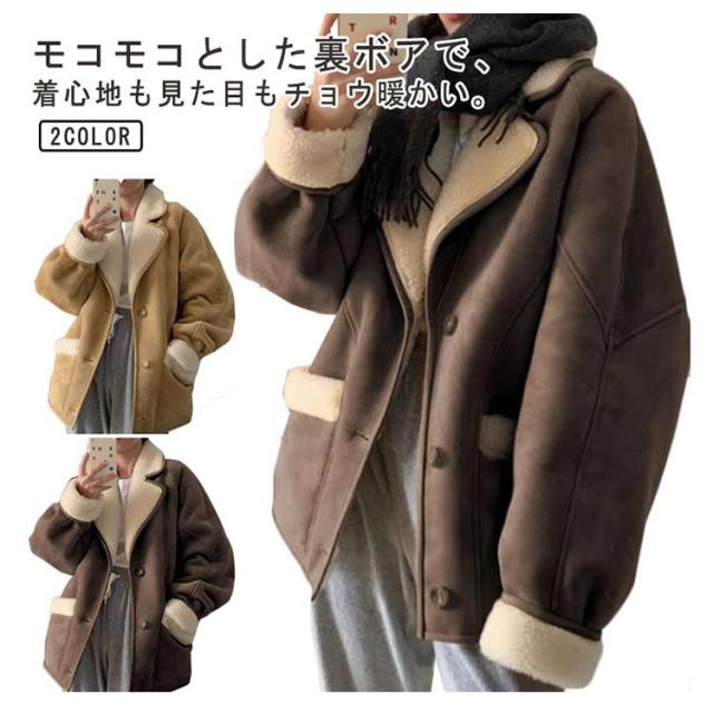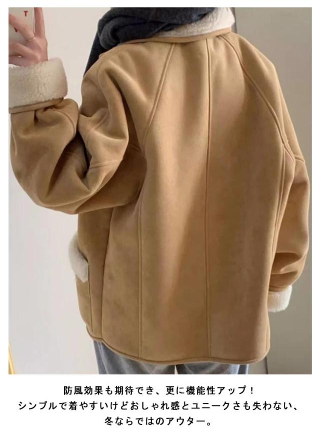 レディース 厚手 ムートンジャケット 冬ジャケット スエード ジャケット 裏起毛 冬 厚手 あったか アウター 長袖 防風 ジャンパー 裏ボア ムートンコート モコモコ ポケット付き カジュアル