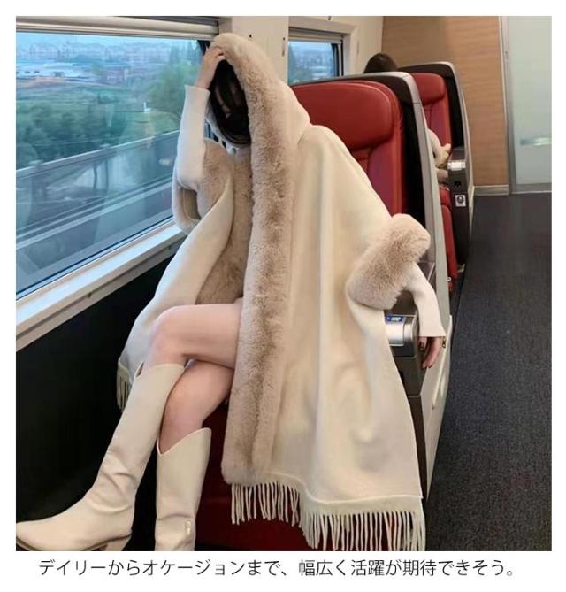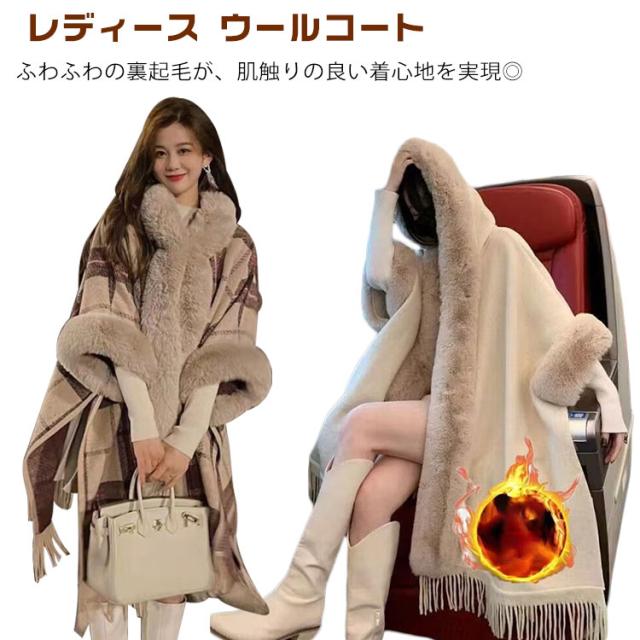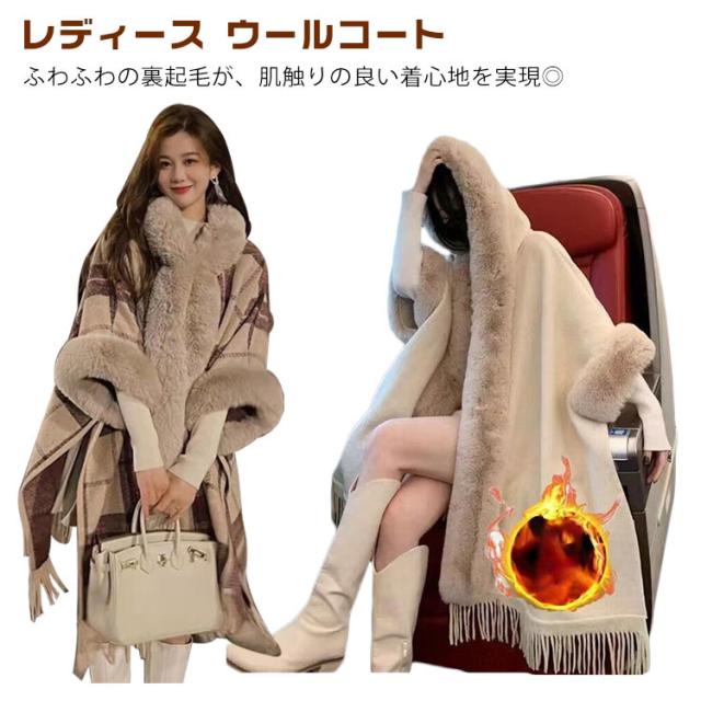 裏ボア ポンチョコート レディース ウールコート ケープコート マントコート 大きいサイズ 真冬 ケープ 羽織 アウター コート ロング カーディガン フェイクファー 防寒 裏起毛 裏起毛なし ゆったり 体型カバー プレゼント 20代 30代 40代 50代 韓国風 秋冬 冬服