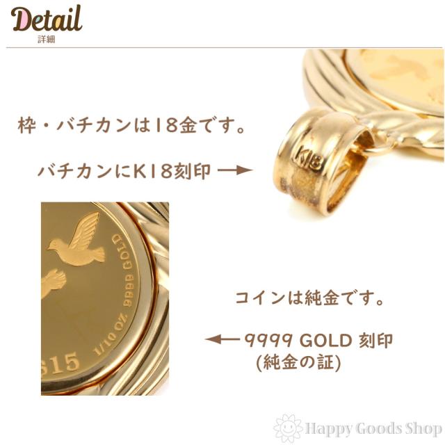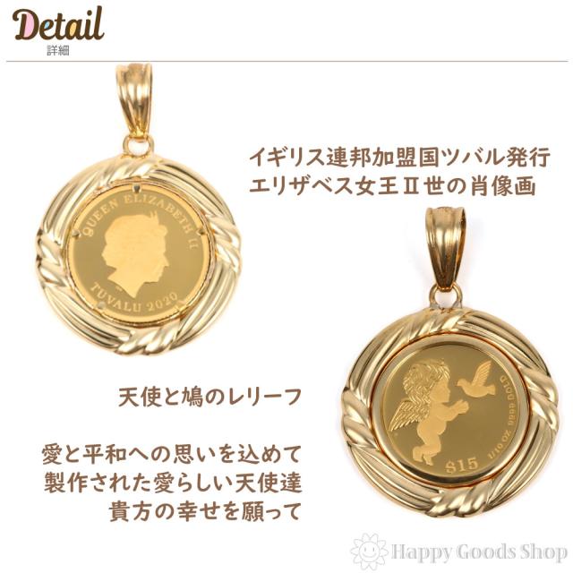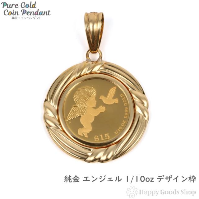 純金 K24 ペンダントトップ エンジェル 1/10oz メンズ レディーズ コイン ゴールド 天使 デザイン枠 ヘッド チャーム