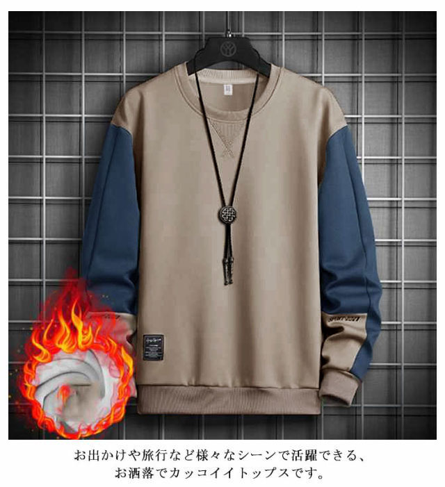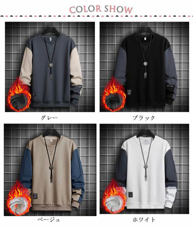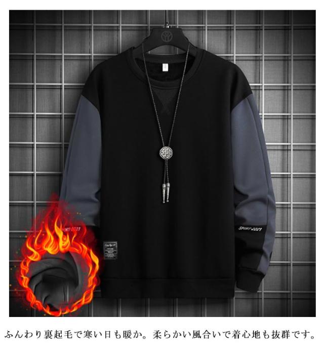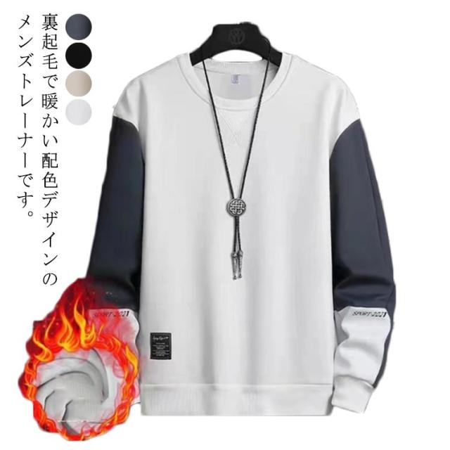 裏起毛 トレーナー メンズ スウェット トレーナー パーカー 暖かい 秋冬 防寒 裏フリース 厚手 あったかい プルオーバー トップス クルーネック ゆったり 無地 配色 シンプル スポーツ ルームウェア メンズファッション 秋服 冬服 送料無料