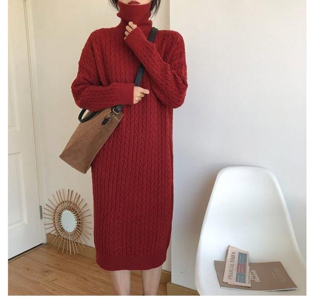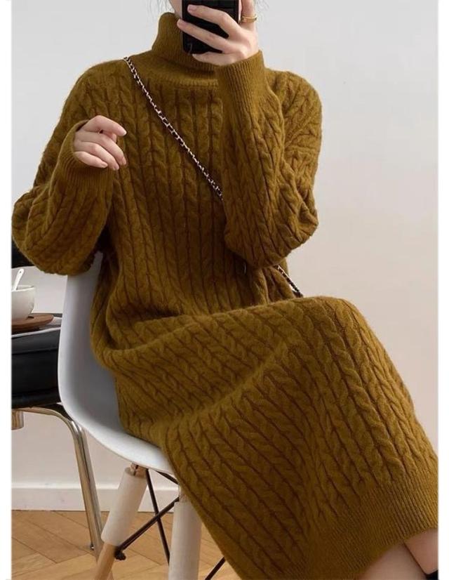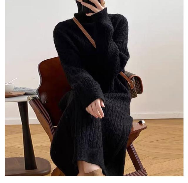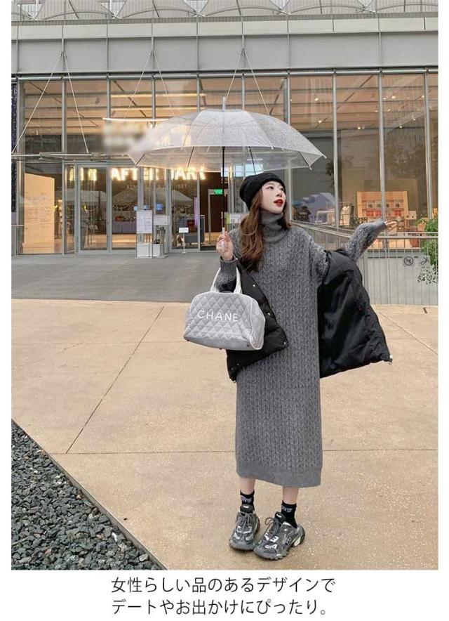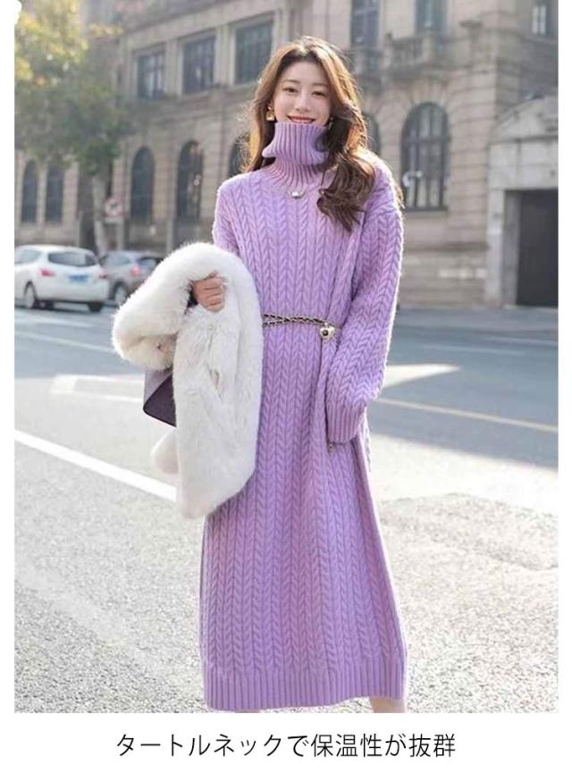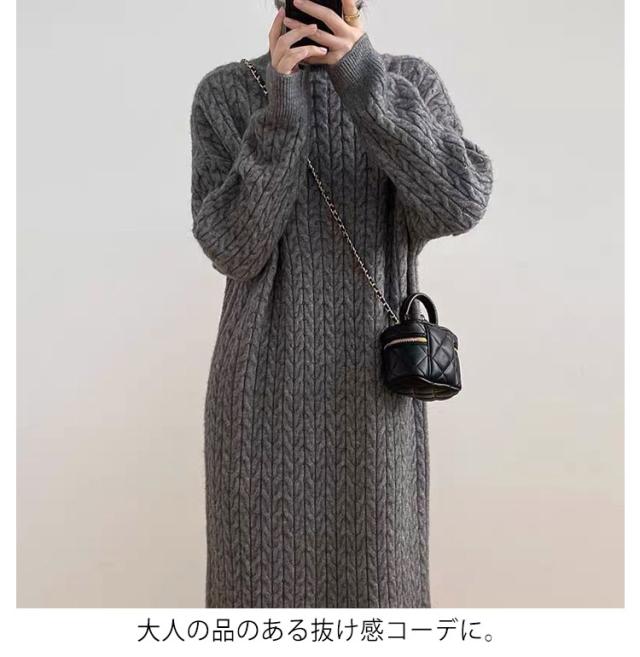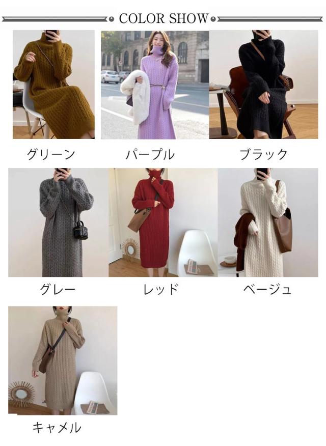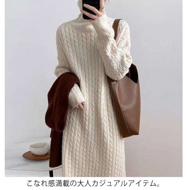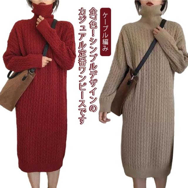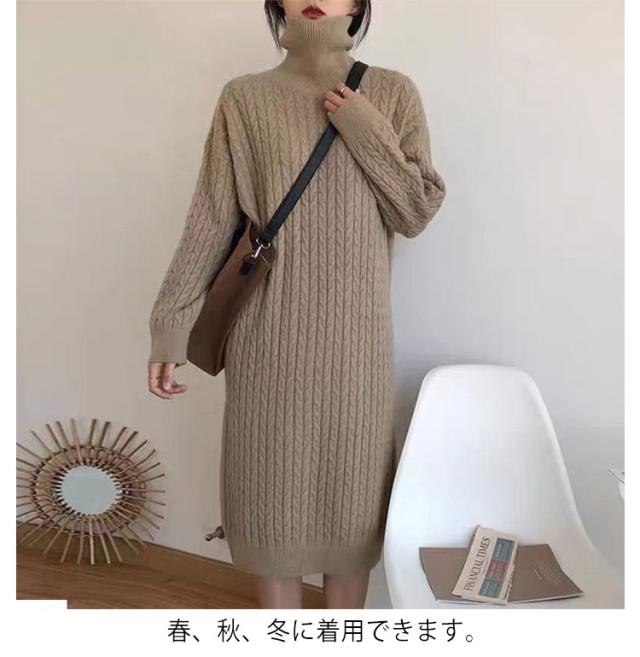 ケーブル編み 長袖 レディース ワンピース タートルネック ニット 大きいサイズ ゆったり 冬 セーター ゆったり タートル ニットワンピース ロング 春 ワンピース 冬