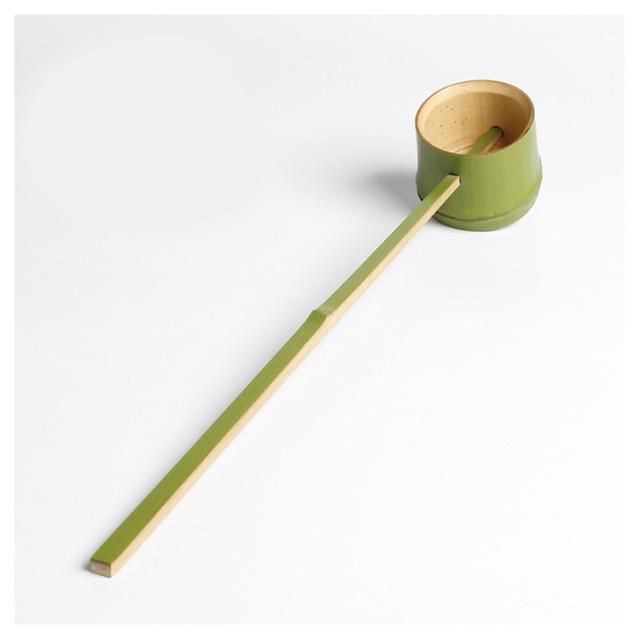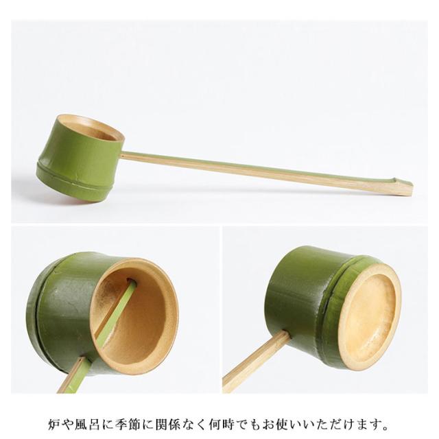 | 小振りな柄杓で、ちょうどお茶碗1杯分のお湯を汲む事が出来ますので、おお寄せのお茶会など大勢のお客様へお茶をお出しする際に大変便利です。 炉や風呂に季節に関係なく何時でもお使いいただけます。 | |