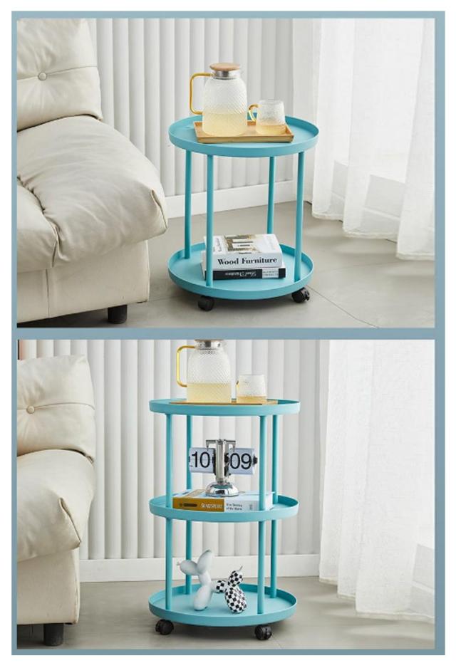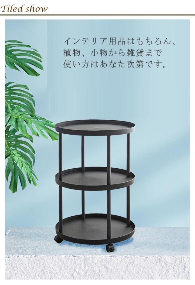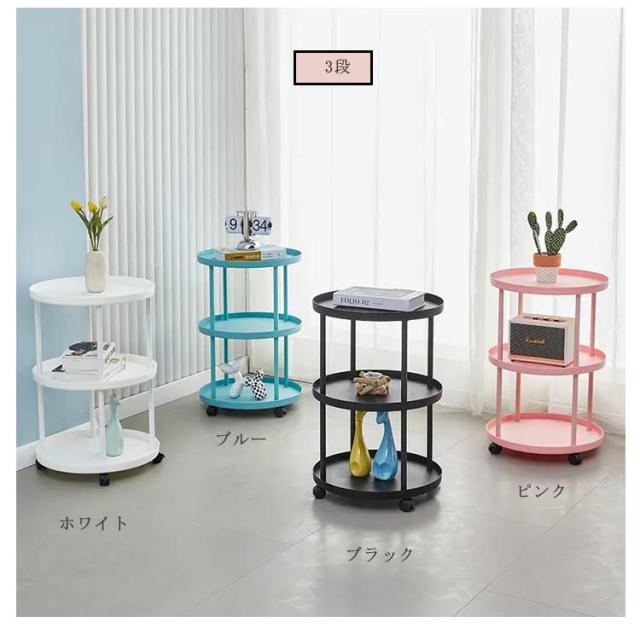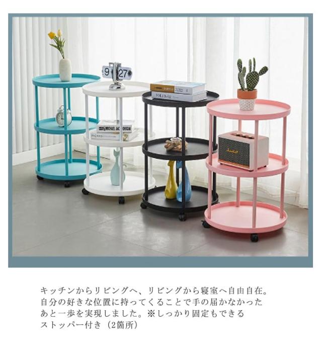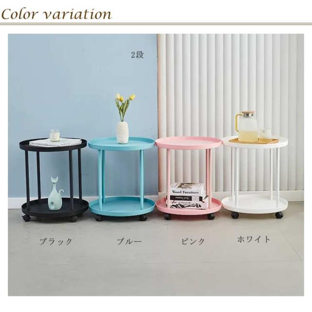 サイドテーブル 2段 北欧 円形 キャスター付き 収納 シンプル トレーテーブル 軽量 トレー サイドワゴン 3段 直径44cm サイドテーブル ストッパー付き おしゃれ かわいい 丸い テーブルワゴン 組み立て簡単 カフェテーブル