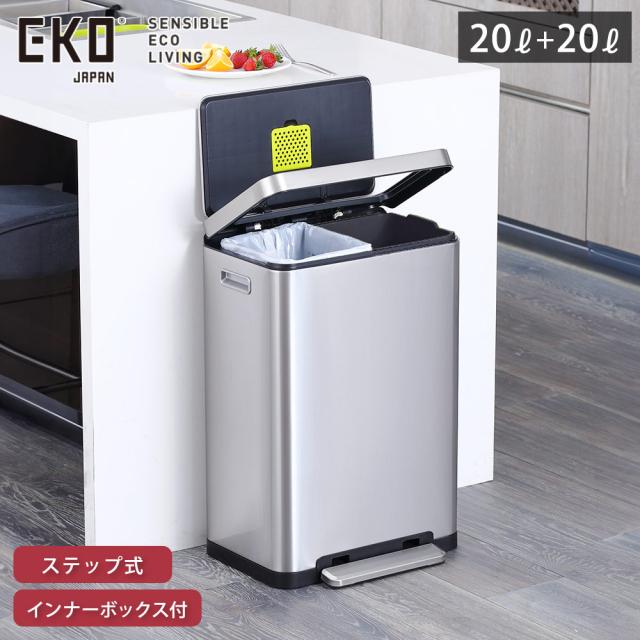 EKO エックスキューブ ステップビン 20+20L ペダル式 ゴミ箱 分別 イーケーオー EK9368MT-20L+20L 【 ごみ箱 抗菌 密閉 生ゴミ 臭わない 分別ゴミ箱 ダストボックス 45リットル 大容量 ペダル ステンレス キッチン リビング 】