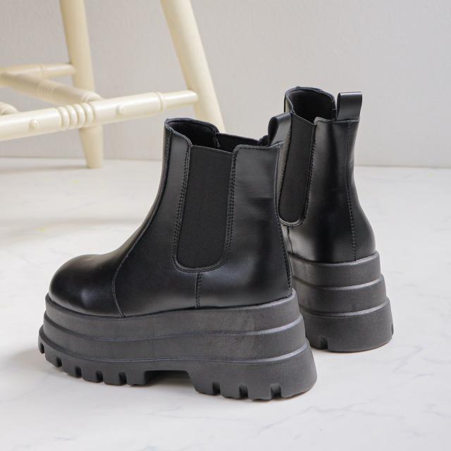 サイドゴアブーツ レディース ショート 厚底 8cmヒール スタイルアップ 履きやすい スクエアトゥ 合皮 No.1662 22-25cm 黒 ラブハンター