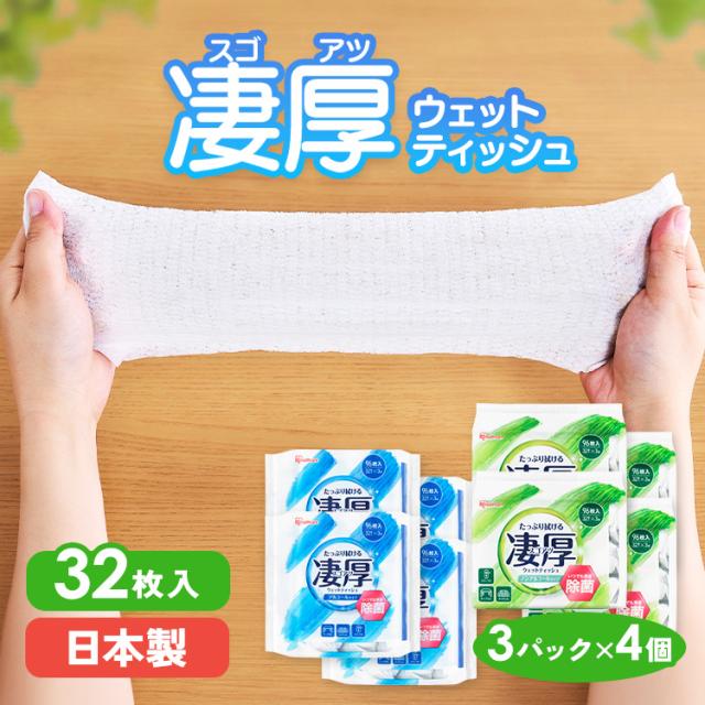 ※702704129へ切替※ウェットティッシュ アルコール ノンアルコール 厚め エタノール 除菌シート セット 厚手 乾きにくい 除菌 持ち運び 大容量 まとめ買い 【384枚】凄厚ウェットティッシュ 32枚入り×12パック アイリスオーヤマ WTP-32A3P WTP-32N3P
