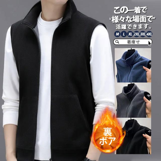 【水曜日まで!10%クーポン配布中】 ベスト メンズ ボアベスト 厚手 裏ボア 秋冬 春 チョッキ ゴルフウェア ゴルフベスト カジュアル 立て襟 シンプル 重ね着 秋