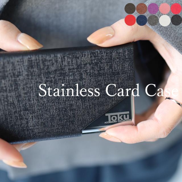【全11色】ステンレス×フェイクレザーカードケース 名刺入れ カードホルダー ステンレス レザー フェイクレザー レディース メンズ プレゼント ギフト