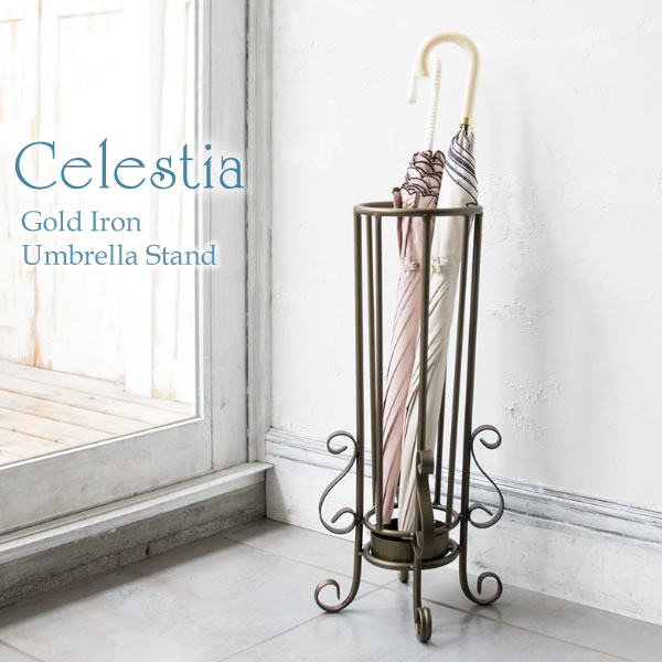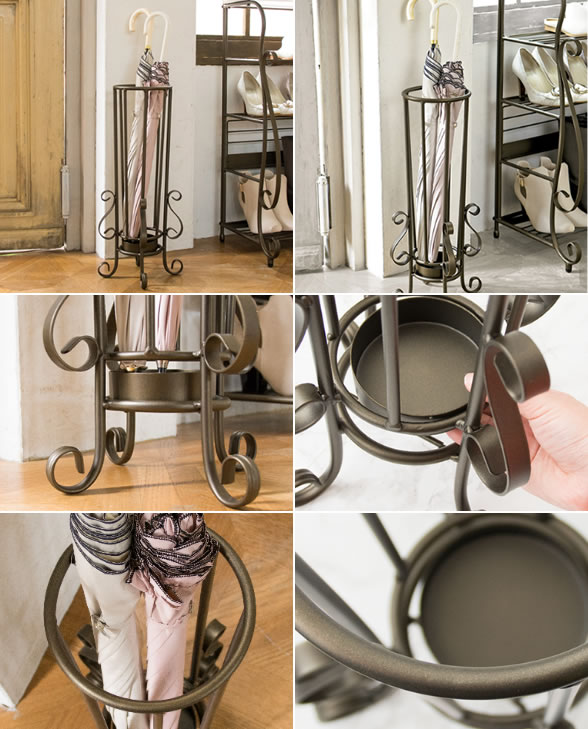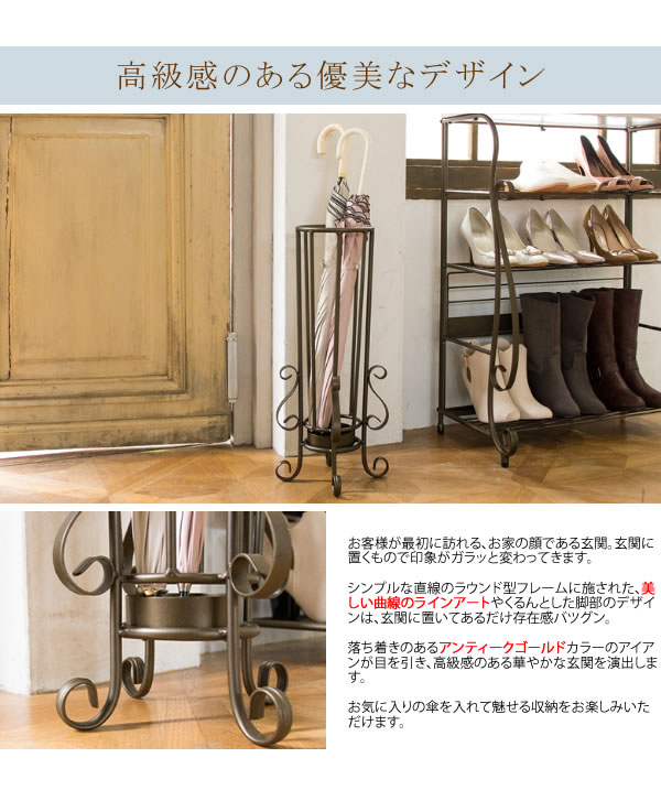 曲線をあしらった装飾の洗練されたデザイン、心地よさを醸し出すアンティークゴールドが人気のシリーズの、アンブレラスタンド。