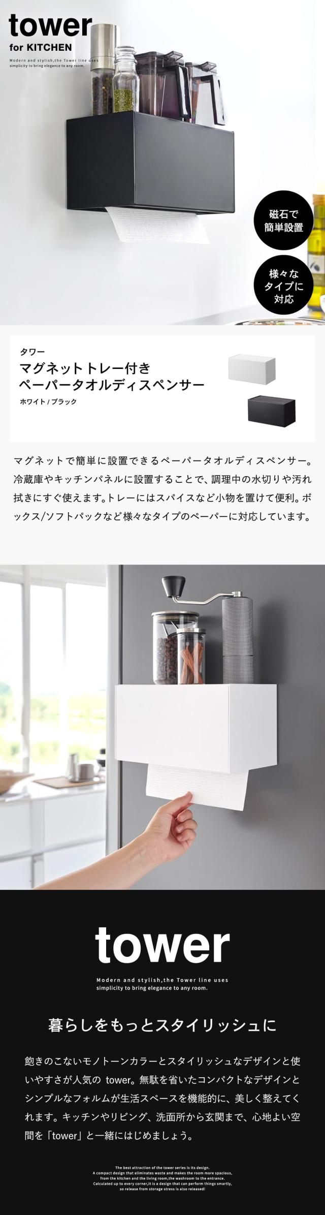 tower 山崎実業 マグネットトレー付きペーパータオルディスペンサー タワー マグネット 送料無料 2192 2193 ホワイト ブラック ペーパーホルダー キッチンペーパー ティッシュペーパー yamazaki タワーシリーズ