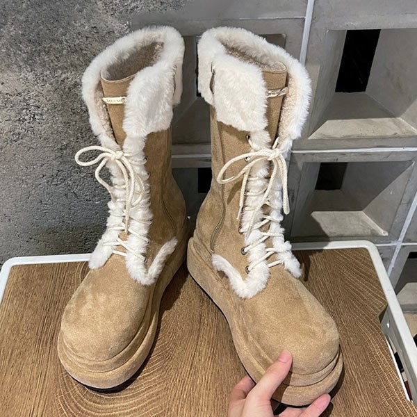 スノーブーツ ブーツ レディース 毛の縁 着痩せ効果 太いヒール 厚底 美脚 防寒 秋 冬 可愛い フェミニン ガーリー きれいめ 通勤 人造毛皮 ベージュ xz005cycyzr