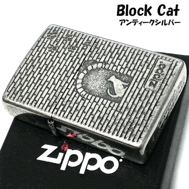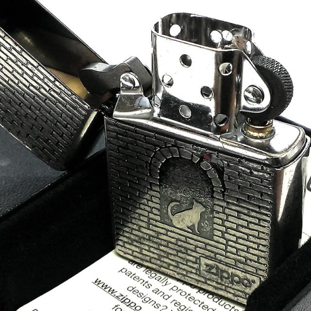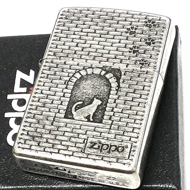 ZIPPO ライター CAT シルバー 猫 レンガ 彫刻 ジッポ ライター 足跡 ネコ 銀 かわいい 女性 レディース おしゃれ