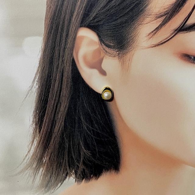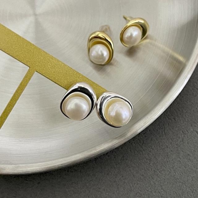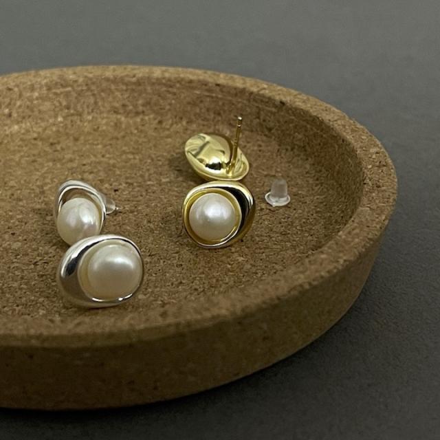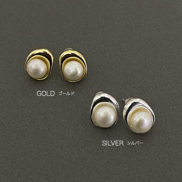 淡水パールのメタルデザインピアス。結婚式や二次会、記念日のプレゼントにもオススメです。