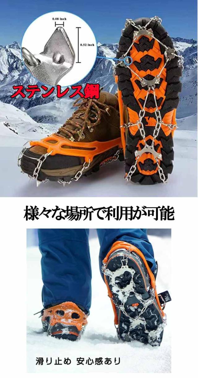 アイゼン チェーンスパイク 登山 スパイク 雪山 滑り止め チェーン ステンレス スノースパイク 凍った道 雪 ハイキング 穴釣り 磯釣り 沢登り 転倒防止 落下防止 装着 簡単 収納バッグ zk1177