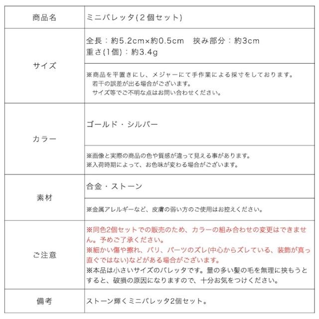 ストーンがキラキラ輝くミニバレッタ 2個セット