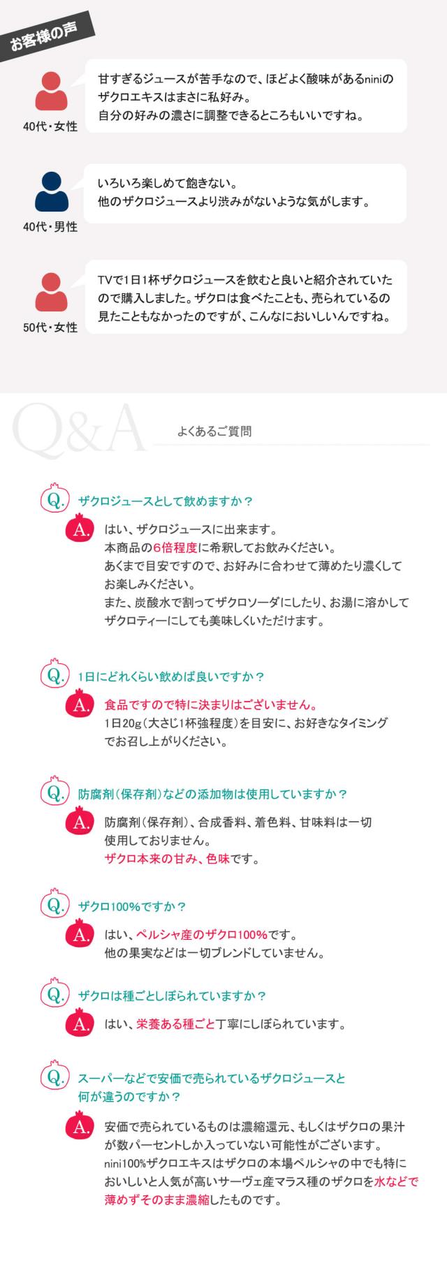 「niniザクロエキス」は、農薬、防腐剤、甘味料、着色料を一切使っていません。
