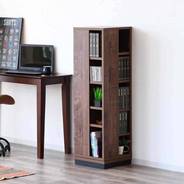 《 LH14539 コミック収納 五段 文庫本 CD DVD インテリア 木目調 シンプル 茶色 北欧 コンパクト 回転 幅35 奥行35 高さ120 cm センチ おうち時間 回転する 回る 整理 本 見せる収納 魅せる収納 新生活 》