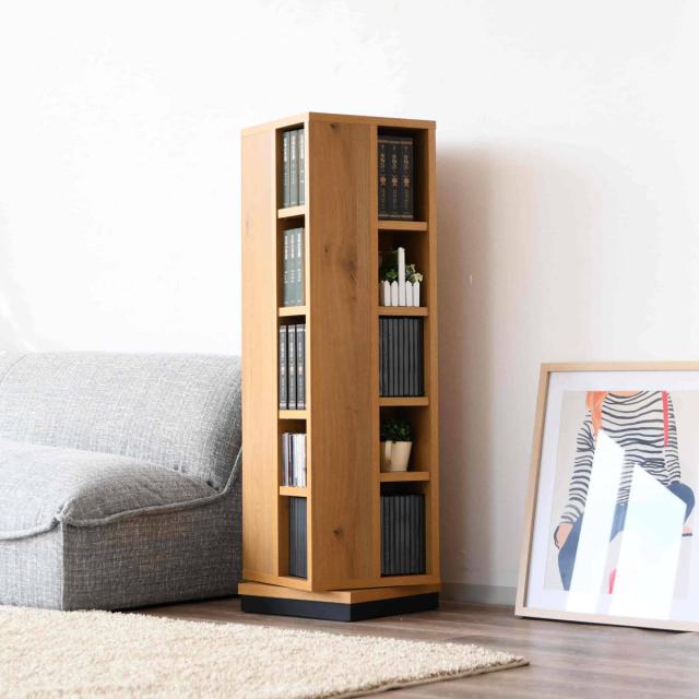 左右360度回転するので、どこに何があるのか一目で分かります。ソファやベッドサイドに置くと手を伸ばして読みたい本が探せるので便利です。
