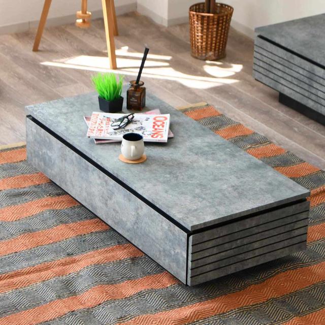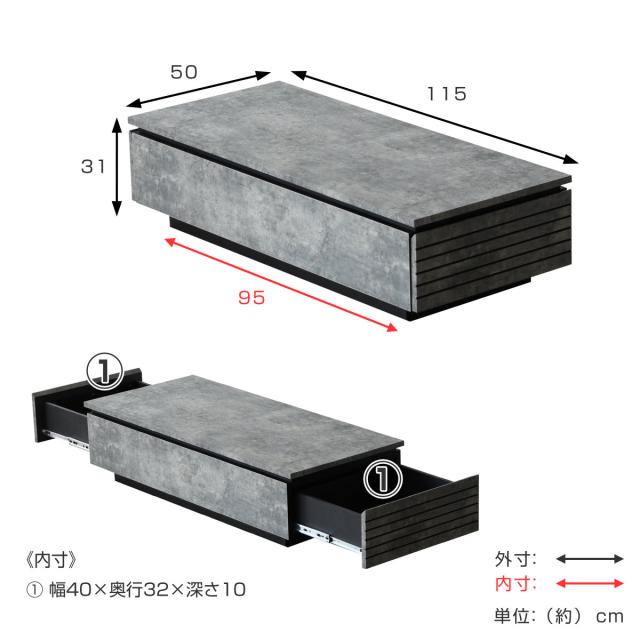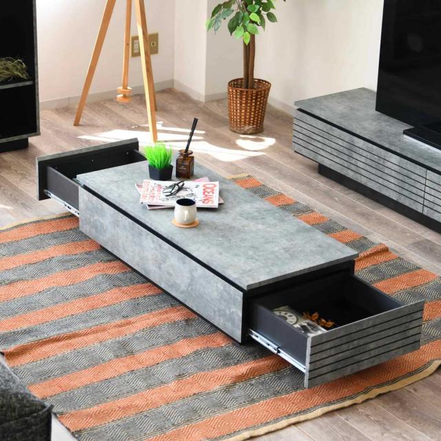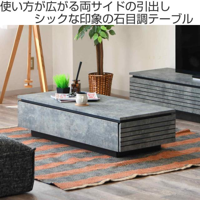 リビングテーブル 石目調 両側引出し 日本製 幅115cm ( ローテーブル センターテーブル テーブル 家具 完成品 収納 引き出し シンプル リビング おしゃれ 北欧 モダン スタイリッシュ )