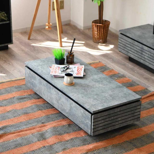たっぷり入る充実の収納力の石目調リビングテーブル