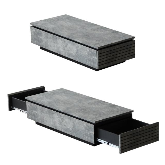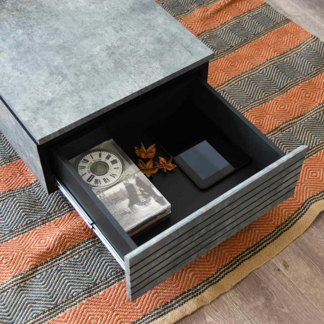 上質で落ち着いた印象を与えてくれる石目調のリビングテーブルです。両サイドには、テーブル周りの小物や雑貨などを収納できる引出しつきなので、お部屋をスッキリと片付けることができます。