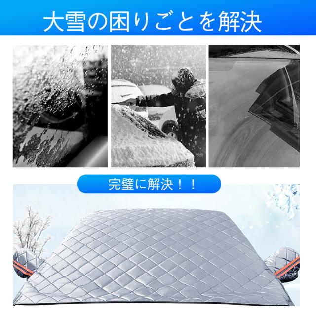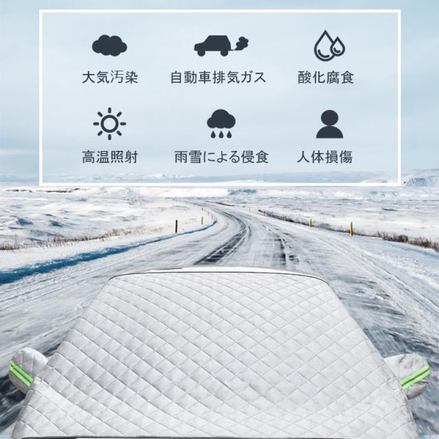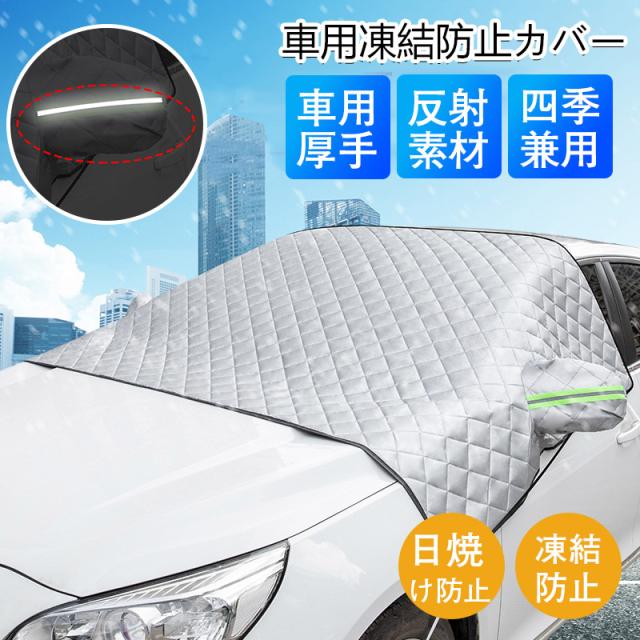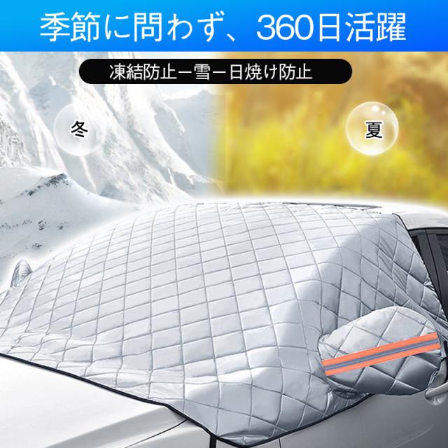 フロントガラスカバー 車用凍結防止シート 軽自動車に適用保護カバー 厚型 反射警告テープ付き 日焼け防止 防雨 落ち葉 霜よけ 結晶 スノー 四季兼用