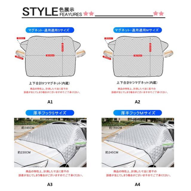 ※春は花粉やホコリよけ、夏日焼け/紫外線よけ、秋落ち葉よけ、冬雪や凍結防止、一年中大活躍!様々な状況に対応でき、フロントガラスがいつもきれいに保ち、洗車の費用も節約します。