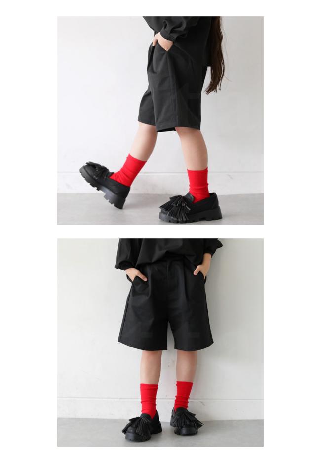 jy-00001 キッズ 子供服 男の子 女の子 ジュニア 高学年 中学生 無地 綿100 短パン 半パン ショートパンツ ショート丈 ゆったり シンプル タック タックパンツ ポケット付き